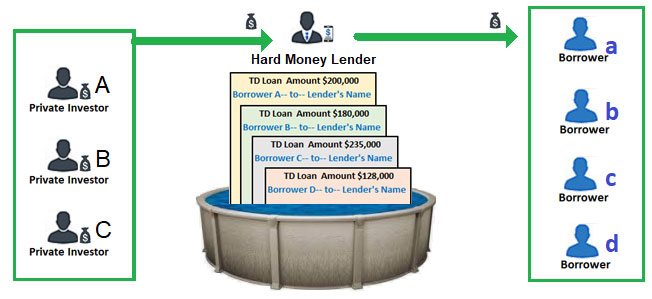 Definition #1- A private Investor using his money to invest in hard money loans through a hard money broker/ lender. The money invested could be in checking accounts, Saving accounts, or IRA accounts. The ROI on the loans is between 5%-15% depending on the lien position LTV and other factors. The loan terms are typically 6 to 36 months.