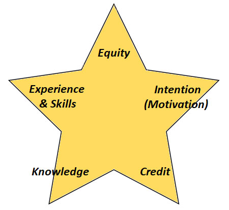 Intention (Motivation)-Your firm intention to get the loan done is essential, and it is the glue the binds together the other four ingredients. When you do not have equity use your intention to recruit family and friends to partner with you. It means that you will have to give part of your profit, but it is better than nothing!